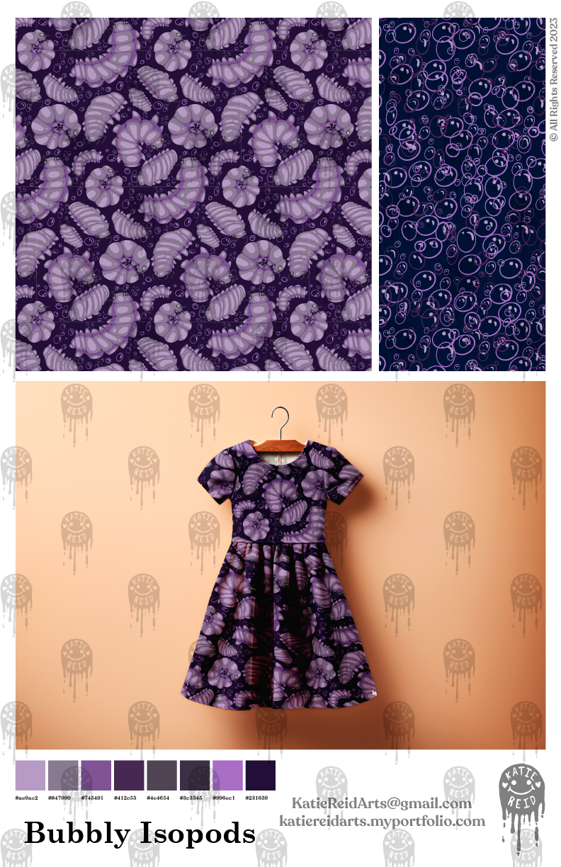 Bubbly Isopod Collection, Completed March 2023 in Adobe Illustrator and ProCreate. mockups courtesy of AdobeStock.